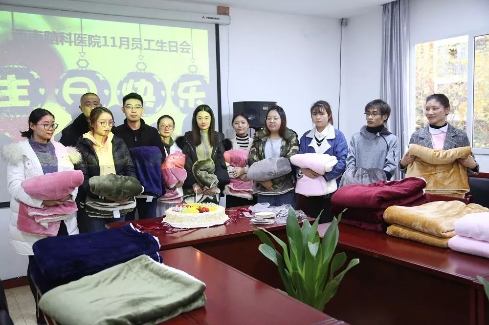 11月28日下午,成都西南脑科医院员工生日会在会议厅举办。十几名11月生日的工作人员欢聚庆生。