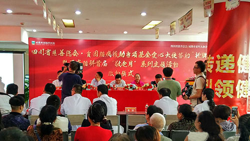 先进在线四川频道报道(何欣桐):2016年10月是第七个敬老月。9月27日,由四川省慈善总会、成都市老年人协会主办、成都西南脑科医院承办的2016成都敬老月系列主题活动拉开帷幕。“四川省慈善总会·贫困脑病援助专项基金爱心大使签约授牌及人生百态银龄谱笑脸征集活动启动仪式”也同步举行。四川省慈善总会秘书长苟兴元,成都市老年协会副秘书长佘万才,贫困脑病援助专项基金爱心大使、巴蜀演员媛凤、田长青,及成都西南脑科医院部分医生均受邀参与此次活动的启动仪式。
