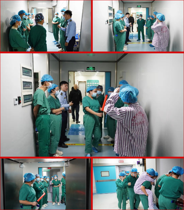 经过严格精密的策划和部署,我们在尹教官的指导下,开展了手术室在突发情况下施救病人的逃生疏散演练。参与者各尽其责,安全将患者转移至避难室,达到了预期目的。
