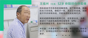病因:四年前由于外伤导致脊髓损伤,双下肢截瘫