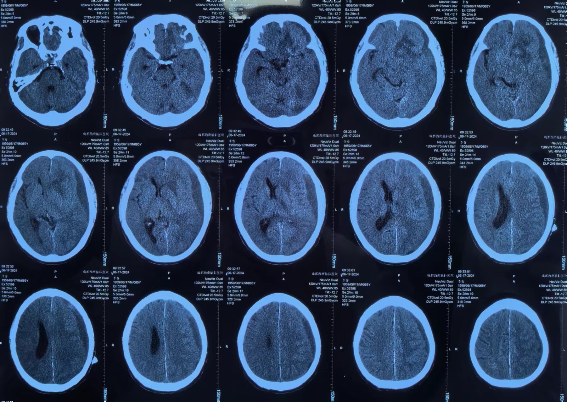 术后李先生自觉头痛明显减轻,术后第三天复查头颅CT提示:硬膜下血肿基本清除,脑移位恢复正常。
